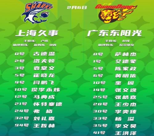 廣東:奎因6記三分37分14籃板5助攻2搶斷2蓋帽,薩姆納26分4助攻,黃明依10分。上海:洛夫頓31分7籃板11助攻,懷特塞德14分12籃板,馬典成15分,王哲林10分,弗格4記三分18分。