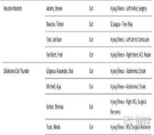 如今處于連敗中的火箭,終于迎來利好消息,那就是前往俄克拉荷馬,客場對陣衛(wèi)冕冠軍雷霆前,官方報告已經(jīng)發(fā)了出來。我們可以看到雷霆三大主將受傷,除了核心亞歷山大,此外杰倫-威廉姆斯和阿杰-米切爾,同樣確定無法出場。
