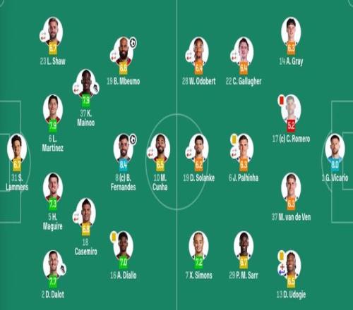熱刺首發(fā):1-維卡里奧、13-烏多吉(55’38-索薩)、14-阿奇·格雷、17-羅梅羅(29’紅牌)、37-范德芬、6-帕利尼亞(80’8-比蘇馬)、7-哈維·西蒙斯、22-加拉格爾(80’11-特爾)、29-薩爾、19-索蘭克(80’39-穆阿尼)、28-奧多貝爾(32’ 3-德勒古辛)