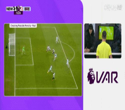 第3分鐘,波特禁區(qū)內(nèi)被拉拽倒地,裁判觀看VAR沒(méi)有判罰點(diǎn)球