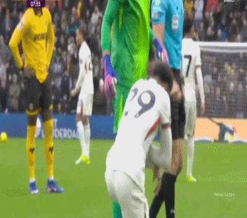 第70分鐘,古斯托與對手對抗,隨后倒在禁區(qū)接受治療