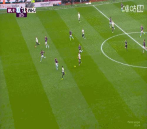 第12分鐘,薩默維爾單刀面對(duì)門將,輕挑破門,伯恩利0-1西漢姆聯(lián)