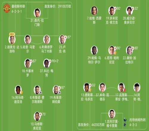 曼聯本場面對力求保級的熱刺,庫尼亞突前、身后是阿馬德-迪亞洛、B費和姆伯莫。熱刺派上哈維-西蒙斯、索蘭克和奧多貝爾。