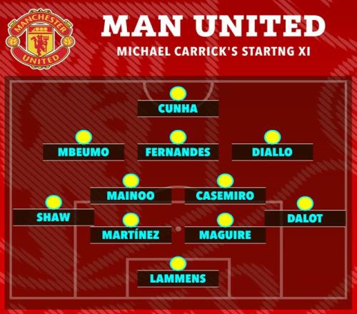 本場是臨時主帥邁克爾·卡里克上任后的第四場聯(lián)賽,他繼續(xù)沿用了回歸球隊傳統(tǒng)的4-2-3-1陣型,取代了前任阿莫林令人不適的3-4-3。這一調(diào)整為球隊帶來了清晰的攻防結(jié)構(gòu)。B費被固定在前腰位置,與鋒線的姆伯莫、庫尼亞聯(lián)系緊密;年輕的梅努則與卡塞米羅組成雙后腰,負責中場的轉(zhuǎn)換與保護。數(shù)據(jù)顯示,曼聯(lián)全場控球率高達65%,傳球成功率90%,完全掌控了比賽節(jié)奏。