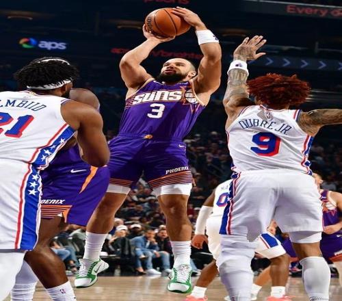 76人險(xiǎn)勝太陽奪第30勝:恩比德33+9馬克西29+9布克復(fù)出21+9