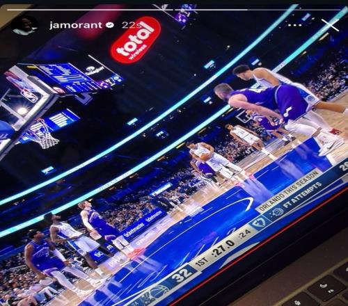 體育播報2月8日宣 灰熊后衛(wèi)莫蘭特更新社媒,曬出了在家看前隊友小賈倫·杰克遜爵士生涯首秀的圖片。
