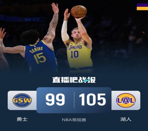 首節(jié)開打后斯潘塞先拔頭籌,湖人連中三分強勢回應,肯納德登場外線張手就有,兩隊你來我往比分緊咬,首節(jié)結束時勇士領先1分,次節(jié)回來,雙方進攻稍顯滯澀,勇士穩(wěn)扎穩(wěn)打保持微弱優(yōu)勢,半場戰(zhàn)罷,勇士依然領先1分。易邊再戰(zhàn)后詹姆斯連投帶罰獨攬12分,斯瑪特和范德比爾特續(xù)上火力,湖人連續(xù)轟出得分高潮后來居上,三節(jié)結束后湖人反超確立8分優(yōu)勢,末節(jié)上來,勇士下起三分雨迫近比分,湖人回敬13-2制勝攻擊波,勇士逆轉未果,最終湖人105-99擊敗對手迎三連勝。