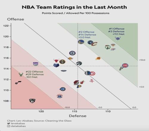 作為對比,聯(lián)盟第一的雷霆在2026年戰(zhàn)績是11勝8負,東部第一的活塞在2026年的戰(zhàn)績是13勝5負。再看一組數(shù)據(jù):過去一個月黃蜂的進攻效率聯(lián)盟第一,防守效率聯(lián)盟第三,凈效率也是聯(lián)盟第一。沒有什么征兆,黃蜂突然崛起了。