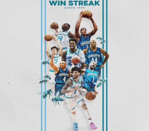 這是黃蜂隊史自1999年4月以來,近27年首次取得9連勝。黃蜂的前身是夏洛特山貓,2004年才建隊,怎么會有1999年的紀錄?看看下面這張圖大家就知道了,現(xiàn)在的黃蜂不僅繼承了山貓隊史,還有1988-2002老夏洛特黃蜂的隊史。