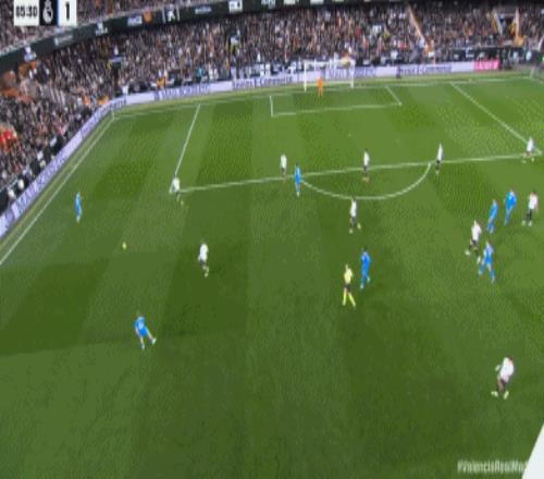 第17分鐘,皇馬全線壓上,貢薩洛禁區(qū)前沿斜塞,姆巴佩禁區(qū)內(nèi)接球調(diào)整一步近距離大力推射,門將迪米特列夫斯基奮勇將球擋出。第27分鐘,皇馬中路壓上,姆巴佩連續(xù)擺脫防守斜塞右側(cè),希門尼斯跟進(jìn)獲得很好的機會,只是他大力推射也是被迪米特列夫斯基奮力將球擋出。易邊再戰(zhàn)皇馬繼續(xù)猛攻,但還是遲遲未能取得進(jìn)球,直到第64分鐘,皇馬左路壓上,郝伊森禁區(qū)前沿直塞,卡雷拉斯禁區(qū)邊上接球,面對瓦倫西亞5,6人包圍,卡雷拉斯仍然是猛猛地往里突破,雖然被擋了一下,但還是硬過了4人,搶在另外2人包夾之前大力低射,皮球直入球門右下死角,皇馬1:0打破僵局。