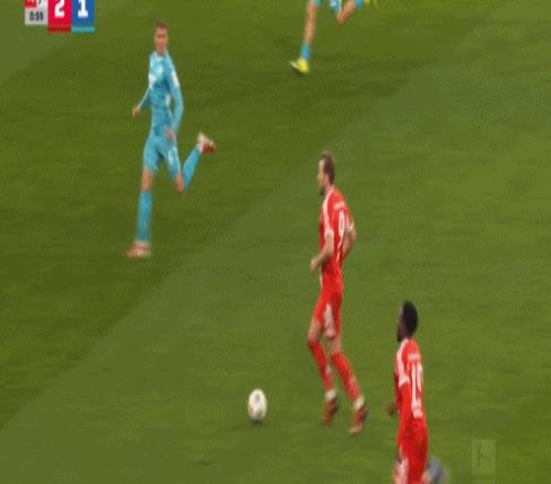 第28分鐘霍芬海姆差一點扳平比分,阿斯拉尼的頭球被門框拒之門外,不過僅僅過了7分鐘,諾伊爾就送出大禮,克拉馬里奇的進球?qū)⒈确肿分?平,半場比賽結(jié)束前,迪亞斯再度造點,讓凱恩上演梅開二度,隨后自己也取得進球,幫助拜仁帶著3-1的比分,回到了中場更衣室。