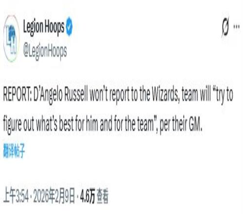 北京時間2月9日,在今年NBA交易截止日前,華盛頓奇才通過一筆以安東尼-戴維斯為核心的多方交易,得到了多名球員,前全明星球員拉塞爾也被包含在這筆交易中。不過,奇才總經(jīng)理威爾-道金斯透露,拉塞爾將不會向球隊報到。