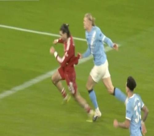 比賽最后階段,利物浦門將阿利松棄門參與進(jìn)攻,切爾基抓住機(jī)會(huì)從中場(chǎng)吊射空門。就在皮球滾向球網(wǎng)之際,哈蘭德與索博斯洛伊雙雙回追。過程中,索博斯洛伊拉拽哈蘭德球衣,被認(rèn)定為“破壞明顯進(jìn)球機(jī)會(huì)”;而哈蘭德隨后也回手拉了對(duì)方一把。