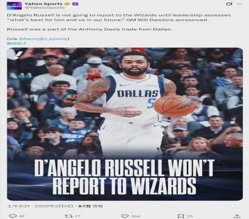 今年2月5日,奇才送出米德爾頓、AJ-約翰遜、巴格利、布蘭納姆、2個首輪、3個次輪,9換4從獨行俠交易得到濃眉、拉塞爾、哈迪、??怂_姆。當(dāng)時美國媒體調(diào)侃:無論濃眉去哪里(湖人、獨行俠、奇才),都無法擺脫拉塞爾。