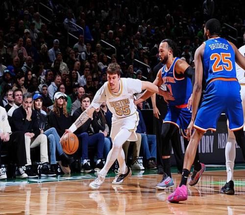 在此前的一場(chǎng)NBA常規(guī)賽中,紐約尼克斯以111比89戰(zhàn)勝了主場(chǎng)作戰(zhàn)的波士頓凱爾特人。本場(chǎng)比賽后,在最近10場(chǎng)比賽中拿下了9場(chǎng)勝利的尼克斯的戰(zhàn)績(jī)提升到了34勝19負(fù),排名反超了凱爾特人提升到了東部第2位;而結(jié)束了5連勝的凱爾特人的戰(zhàn)績(jī)則是下滑到了34勝19負(fù),排名也是被尼克斯超過(guò)而下滑到了東部第3位,兩支球隊(duì)的勝場(chǎng)差為0場(chǎng)。