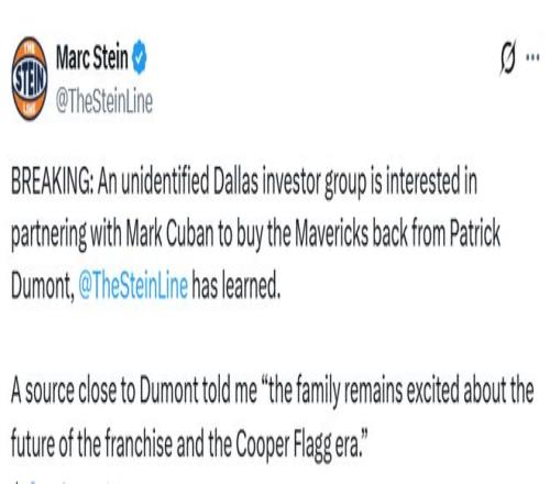 北京時(shí)間2月10日,據(jù)名記Stein報(bào)道,一個(gè)未公開身份的達(dá)拉斯投資集團(tuán)有意與馬克-庫班合作,從帕特里克-杜蒙特手中回購獨(dú)行俠隊(duì)。