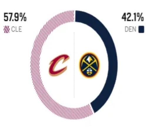 賽前,美媒ESPN對本場比賽進行了預(yù)測,掘金勝率僅有42.1%,騎士勝率意外高達57.9% ,占據(jù)優(yōu)勢。