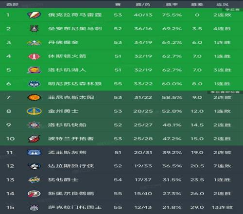 西部最新積分榜