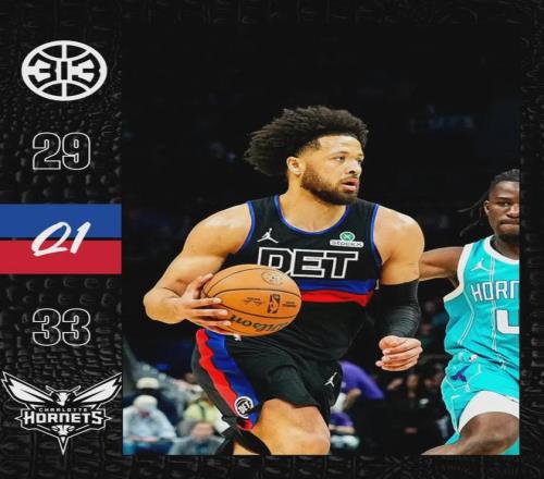 第一節(jié)打完,黃蜂33-29領(lǐng)先活塞4分。坎寧安開局手感不佳,首節(jié)7中1僅得4分3籃板3助攻。黃蜂這邊,克尼佩爾和布蘭登-米勒單節(jié)合砍18分,他倆現(xiàn)在就是黃蜂的基本盤。第二節(jié)坎寧安突然爆發(fā),單節(jié)7投6中砍下15分3助攻。