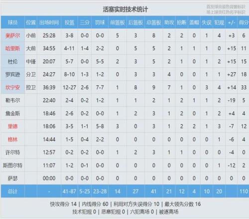 黃蜂的9連勝被終結(jié),最后來(lái)看看比賽數(shù)據(jù),說(shuō)說(shuō)你的心情: