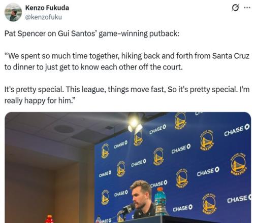 勇士隊之所以能夠逆勢拿下勝利,桑托斯與斯潘塞兩大奇兵成為功臣。