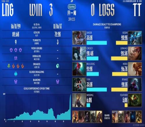 第三局對線期和前兩局沒什么不一樣,TT的AD選手Ryan3維魯斯下路連送兩波,又給對位的1xn女槍養(yǎng)肥了!LNG一如既往的拿下2K多的對位經(jīng)濟差!中期LNG斷掉了TT小龍,但是Croco巨魔一波下路強開白給+MISSING芮爾河道白給,送給TT大龍,又讓TT抹平了經(jīng)濟差?。∽罱K的遠(yuǎn)古龍團前MISSING芮爾再次白給,但是少個人的LNG依靠陣容優(yōu)勢拖到了輔助復(fù)活,強殺泰坦+搶到遠(yuǎn)古龍之后團滅TT終結(jié)比賽,這樣LNG就淘汰TT,晉級到了騎士之路的第三輪!