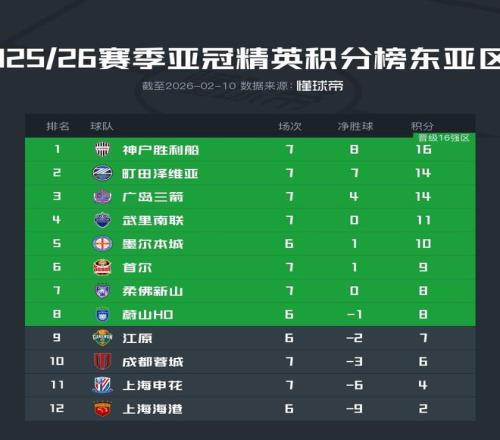 上海申花7輪4分提前出局;成都蓉城仍積6分,身前首爾9分(7輪)、柔佛8分(7輪)、蔚山8分(6輪)、江原7分(6輪),成都必須下輪客場擊敗町田澤維亞,且成績超越四隊里的任意兩支。