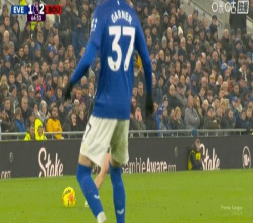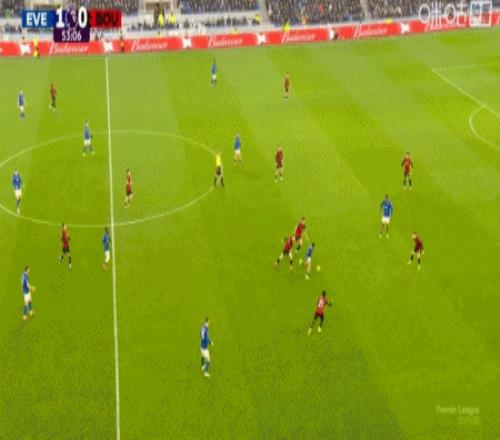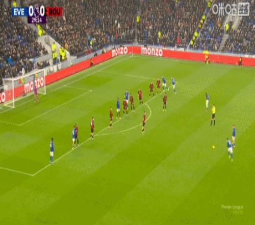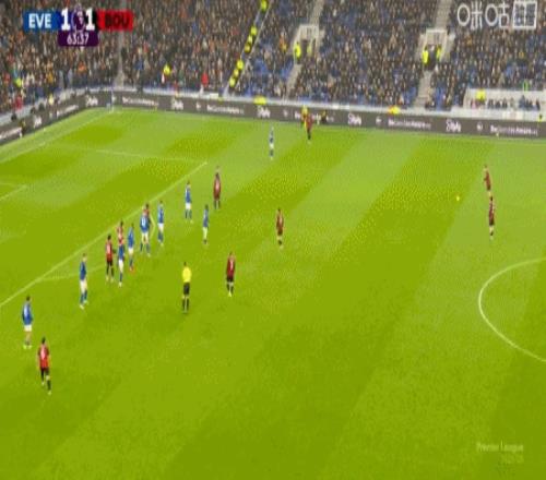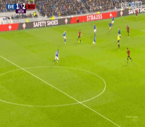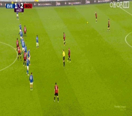 第65分鐘,希爾頭球擺渡,阿德利頭球破門,伯恩茅斯2-1埃弗頓