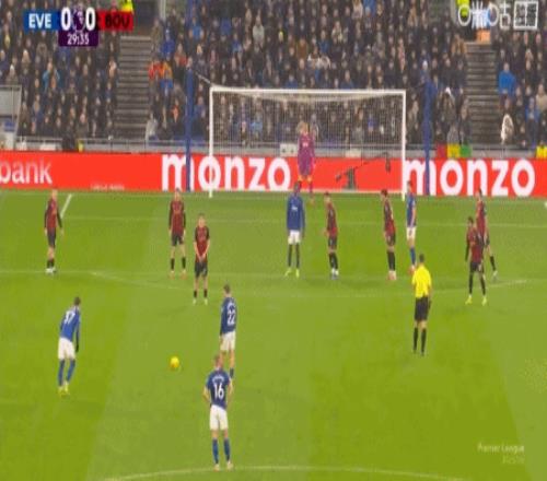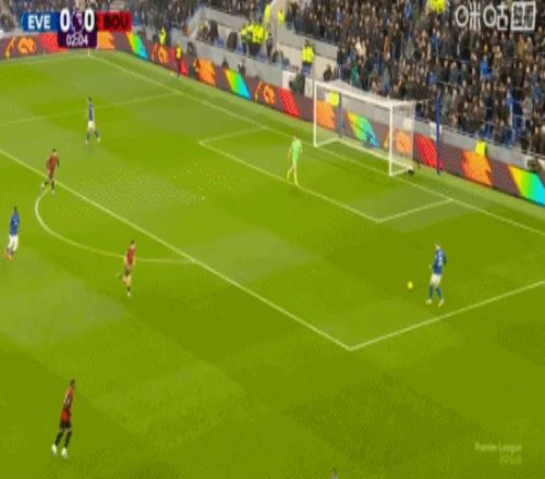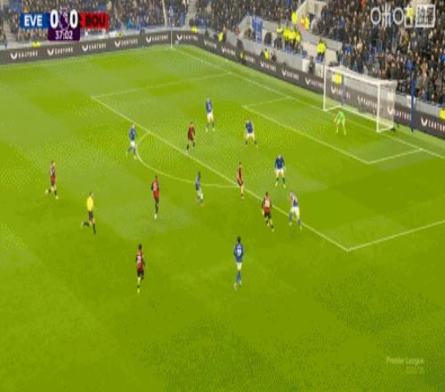 第42分鐘,拉揚(yáng)送點(diǎn),恩迪亞耶主罰點(diǎn)球命中,埃弗頓1-0伯恩茅斯