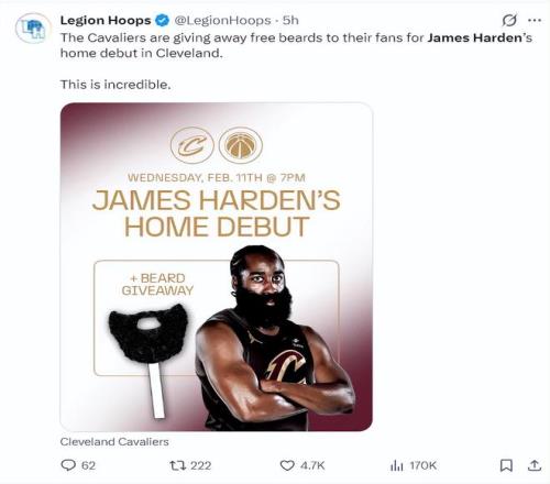 騎士球迷對(duì)哈登的喜愛溢于言表,為了歡迎哈登騎士主場(chǎng)的首秀,主場(chǎng)為每一個(gè)球迷都準(zhǔn)備了大胡子道具。為何蕭華這么不喜歡哈登?
