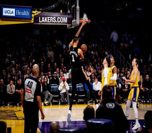 布朗尼連續(xù)失誤,瓦塞爾跳投得分,隨后完成扣籃。范德比爾特轟進遠投,布朗尼被哈珀封蓋,哈珀、瓦塞爾相繼跳投得分,湖人請求暫停。蒂米被蓋帽,哈珀打成了2+1,布朗尼中投得分,科內(nèi)特暴扣還以顏色。范德比爾特2罰1中,科內(nèi)特再次扣籃,馬刺取得41分領先??藘?nèi)克特跳投取分,范德比爾特補籃得手,蒂米命中3分球。第3節(jié)打完,湖人以81比115落后。