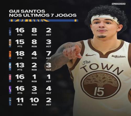先看一組數(shù)據(jù)對(duì)比:過(guò)去7場(chǎng)比賽,勇士前鋒吉-桑托斯場(chǎng)均15分5.1籃板3.1助攻1.3搶斷1蓋帽,投籃命中率62.7%,三分命中率43.3%。追夢(mèng)格林場(chǎng)均7.3分4.7籃板4.3助攻0.9搶斷0.3蓋帽,投籃命中率34.6%,三分命中率32.5%。