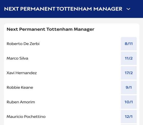 熱刺新帥賠率:德澤爾比居首,哈維、阿莫林、波切蒂諾上榜