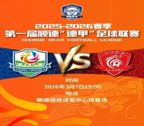 揭幕戰(zhàn)將于2026年3月7日19:00-21:30舉行,比賽地點(diǎn)為順德德勝體育中心體育場(chǎng),票價(jià)9.9元/張,非?;菝瘛=夷粦?zhàn)為大良雙皮奶力酒隊(duì)VS龍江沙發(fā)隊(duì),期待雙方給大家獻(xiàn)上一場(chǎng)精彩的比賽。