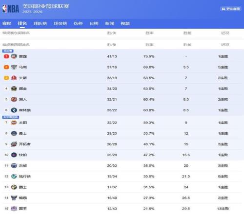 西部排名的競爭,還是很激烈的!雷霆隊(duì)雖然在下滑,但是憑借著前期建立的巨大的戰(zhàn)績領(lǐng)先,目前仍然領(lǐng)先西部第2的馬刺隊(duì)3.5個(gè)勝場,西部第1的位置暫時(shí)無虞!