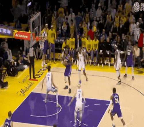 勒布朗接斯瑪特傳球內(nèi)切,特意用左手,扣了右側(cè)補(bǔ)位不及的切特。