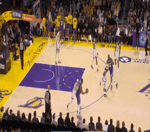 然后是一個切特輪轉(zhuǎn),勒布朗直喂內(nèi)切的八村上籃,切特補(bǔ)位不及。