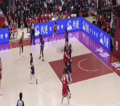 兩隊(duì)在第三節(jié)后半段落入到陣地戰(zhàn),打的比較膠著。而王思雨留在場(chǎng)上,手感也不錯(cuò),三分命中!