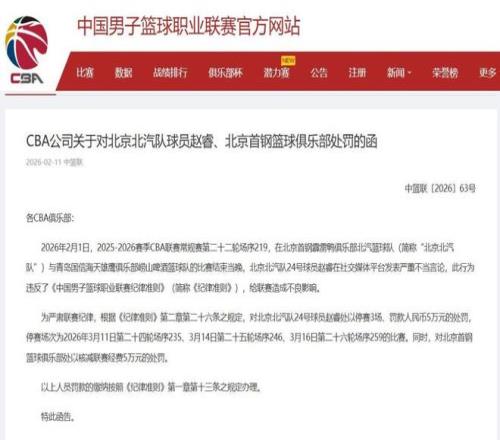 趙睿不當(dāng)言論被重罰,CBA官宣禁賽3場(chǎng)罰款5萬(wàn),首鋼被罰5萬(wàn)