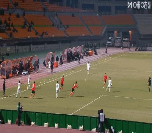 第21分鐘,安永佳送出直塞,馮勁扣過(guò)防守后的低射擊中球門側(cè)網(wǎng)偏出。