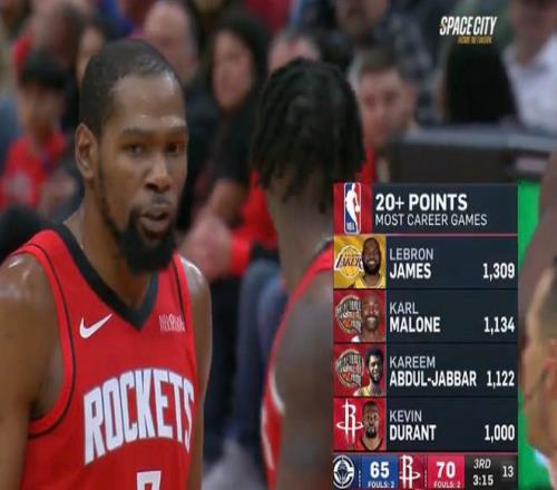 歷史第4人!杜蘭特1000場(chǎng)20+里程碑距詹姆斯差309場(chǎng)難超越