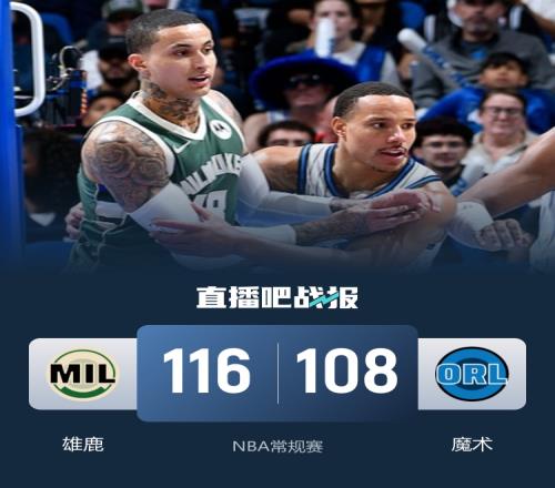 比賽開(kāi)始,貝恩連中3記三分,但庫(kù)茲馬里突外投連砍11分強(qiáng)勢(shì)回應(yīng),雙方展開(kāi)拉鋸戰(zhàn),貝恩繼續(xù)保持手感扔進(jìn)第5記三分,首節(jié)魔術(shù)領(lǐng)先4分,次節(jié)雙方展開(kāi)拉鋸戰(zhàn),魔術(shù)試圖拉開(kāi)比分但雄鹿總有人能回應(yīng),小波特連續(xù)突破帶領(lǐng)雄鹿半場(chǎng)反超1分。下半場(chǎng),雙方比分繼續(xù)膠著,托馬斯站出來(lái)里突外投單節(jié)轟下15分,雄鹿三節(jié)反超5分,末節(jié)雙方始終拉不開(kāi)比分,小波特達(dá)成三雙,貝恩接連三分能回應(yīng),關(guān)鍵時(shí)刻班凱羅隔扣扣飛,特納關(guān)鍵三分命中后托馬斯超遠(yuǎn)三分殺死比賽,最終雄鹿116-108魔術(shù)。