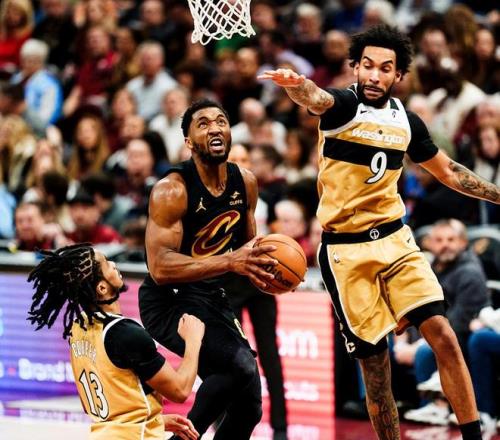 奇才隊(duì)前往客場挑戰(zhàn)騎士隊(duì),兩隊(duì)都在賽季中期完成了大交易,境遇卻有天壤之別。奇才隊(duì)引進(jìn)了特雷楊和濃眉,哥倆卻因傷高掛免戰(zhàn)牌,擺爛依然是奇才隊(duì)本賽季的主旋律??齑?duì)引進(jìn)了哈登,哈登與米切爾組成東部最強(qiáng)后場雙槍,騎士隊(duì)連戰(zhàn)連捷,爭冠是他們的共同夙愿。此役,奇才首發(fā)為喬治+庫利巴利+沃特金斯+卡林頓+特雷約翰遜,騎士首發(fā)為哈登+米切爾+阿倫+泰森+梅里爾。