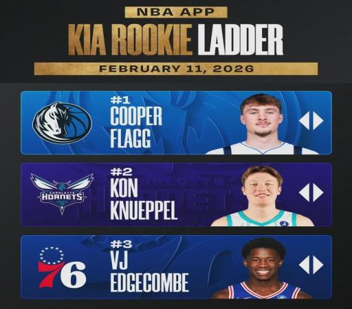 2025屆新秀整體質(zhì)量,比2024屆要高出一大截。76人探花秀埃奇庫姆位列新秀榜第三,鵜鶘13號秀奎因排名新秀榜第四,國王42號秀雷諾已經(jīng)升至第五。馬刺榜眼迪倫-哈珀暫列新秀榜第八,爵士5號秀艾斯-貝利排名第九。