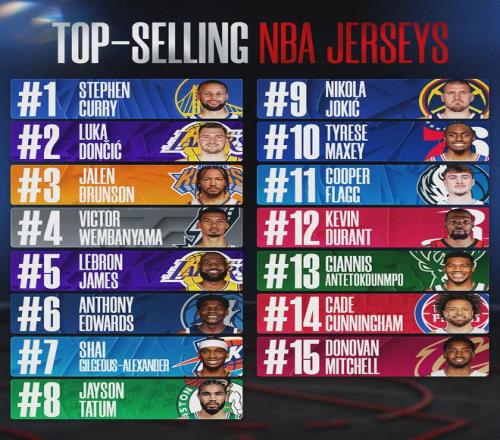 最新一期的官方新秀榜,弗拉格依然排名第一。再看一組數(shù)據(jù),2025-26上半個賽季球衣銷量排行,弗拉格排名第11,力壓杜蘭特和字母哥。而且弗拉格最近的表現(xiàn)比之前更出色,等到賽季結(jié)束時,他的球衣銷量很可能沖進(jìn)前十。