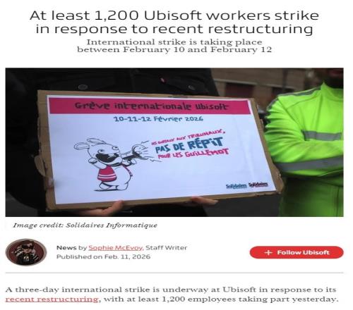 體育播報2月12日宣 據(jù)外媒報道,近日育碧法國工作室從當(dāng)?shù)貢r間的2月10日起,宣布進(jìn)行為期三日的罷工活動,并號召全世界的育碧工作室員工一同加入行列,育碧巴黎工作室的Solidaires Informatique工會代表Marc Rutschlé證實(shí),罷工第一天就有超過1200位員工參與。