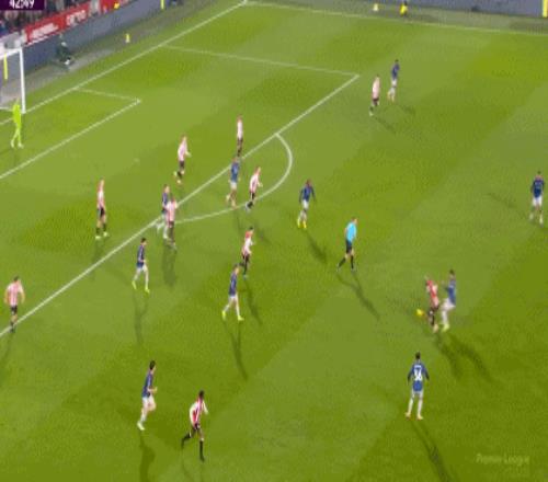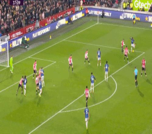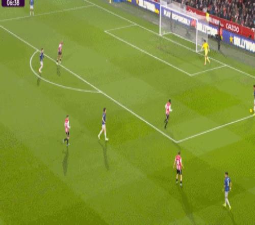 第22分鐘,布倫特福德前場(chǎng)右路邊線球扔到禁區(qū),拉亞得球發(fā)起進(jìn)攻失誤,布倫特福德傳中到禁區(qū),拉亞神撲化解頭球攻門。