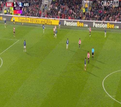 開場20分鐘,布倫特福德的高位逼搶令阿森納后場出球持續(xù)便秘。拉亞在第15分鐘的停球失誤險些復(fù)制加西亞式的慘案,好在此后的神撲挽救了問題。上半場后半段,槍手逐漸奪回控球,但因卡皮耶與馬杜埃凱的邊路連線始終無法形成實質(zhì)威脅,因此,機會不太多。