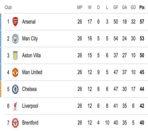 英超第26輪,阿森納客場1比1被布倫特福德逼平,領(lǐng)先優(yōu)勢(shì)被縮減到4分。