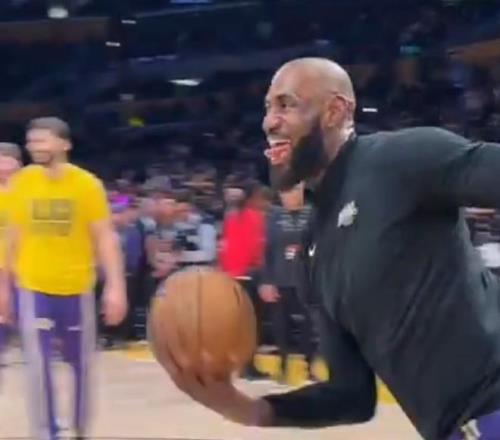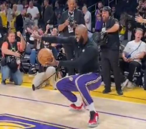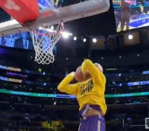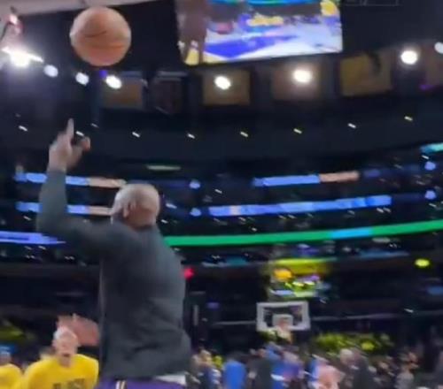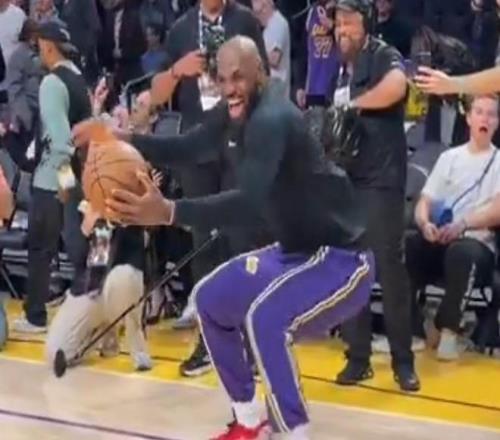 北京時間2月13日,湖人主場對陣獨行俠,在賽前熱身時出現(xiàn)了有意思的一幕,詹姆斯在場邊進行了一段魔性舞蹈后助攻海斯空接扣籃得手。